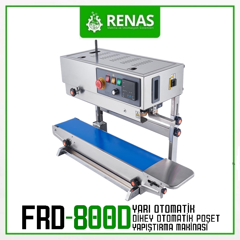 - FRD-800D vertical series bag sealing machine provides daily production of over 5000 pieces thanks to its electrical equipment made of durable and 1st class materials.